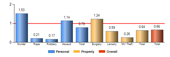 average for each type of crime equals a score of 1.0, so a score of 2.0 would represent