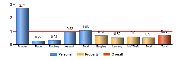 average for each type of crime equals a score of 1.0, so a score of 2.0 would represent