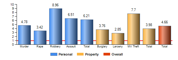 average for each type of crime equals a score of 1.0, so a score of 2.0 would represent