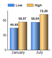 The Temperature chart displays average high and low values for January and July,