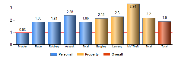 average for each type of crime equals a score of 1.0, so a score of 2.0 would represent